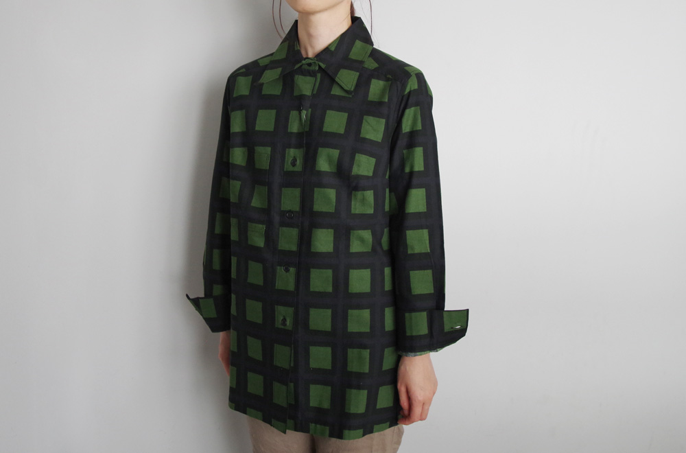 グリーンとブラックの格子柄のようなチェックが目を引きます。