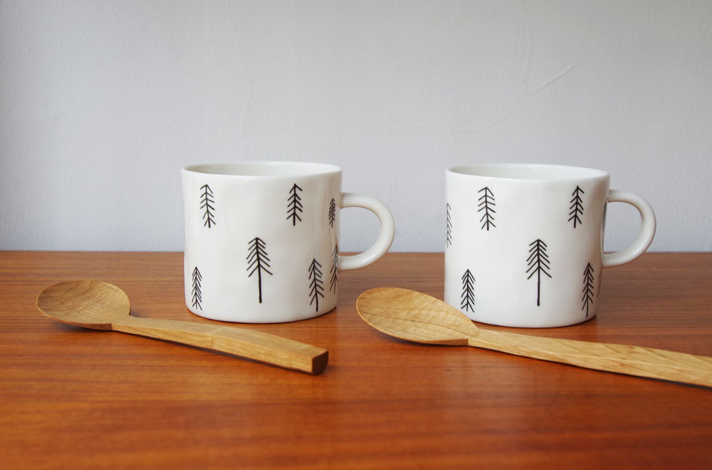 針葉樹が不規則に描かれたデザイン。手書きのようなタッチも素敵です。