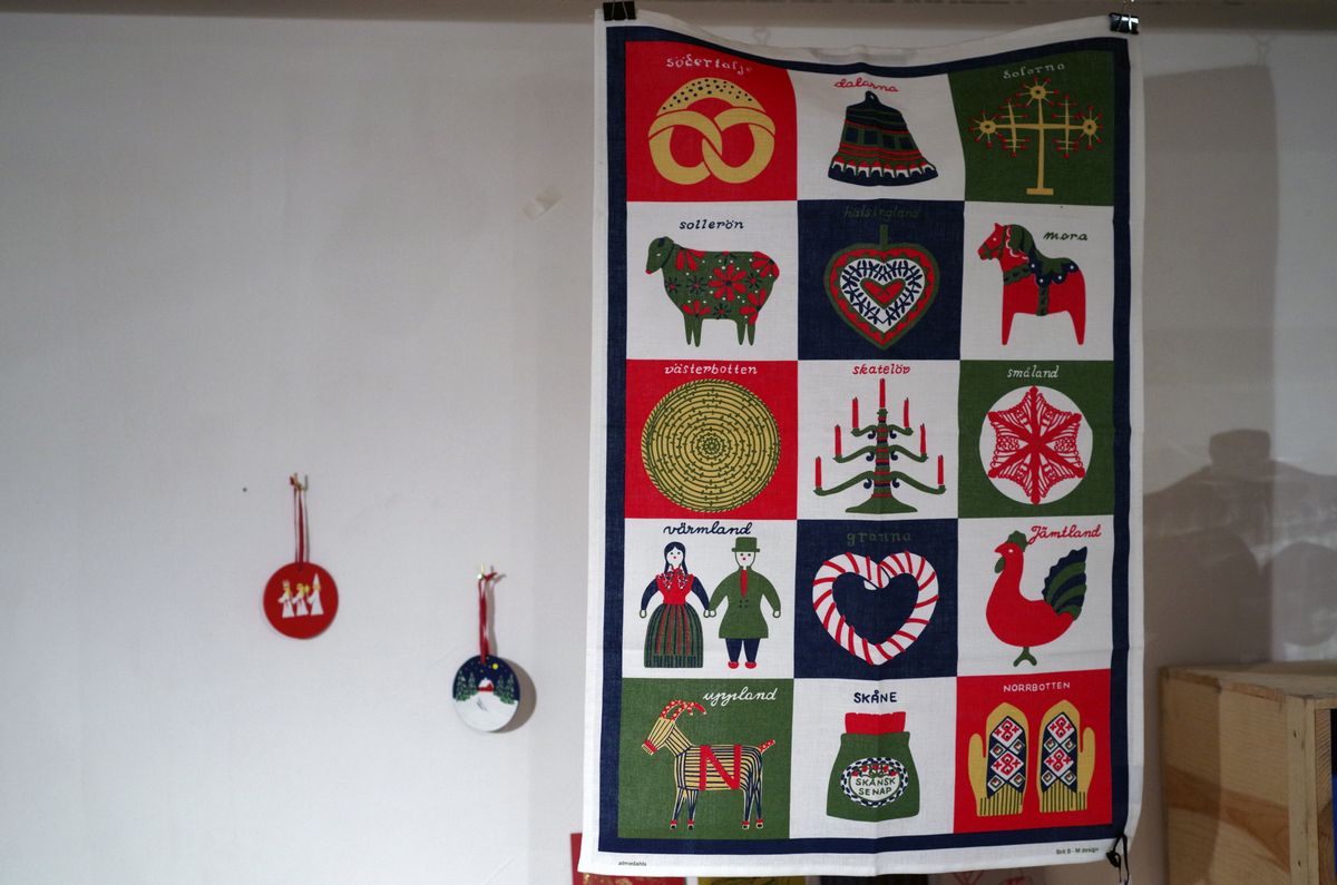 ダーラナホースなど、赤と緑の色味が印象的なデザイン。
