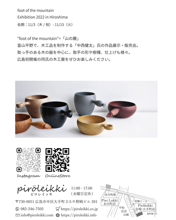 富山平野で、木工品を制作する「中西健太」氏の作品展示・販売会。