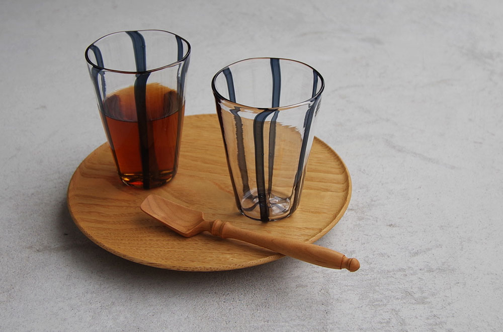 シンプルな深青のラインが入った「アオグラス」。口元は、緩やかな曲線が美しく、細くラインが入ることで落ち着いた印象に。