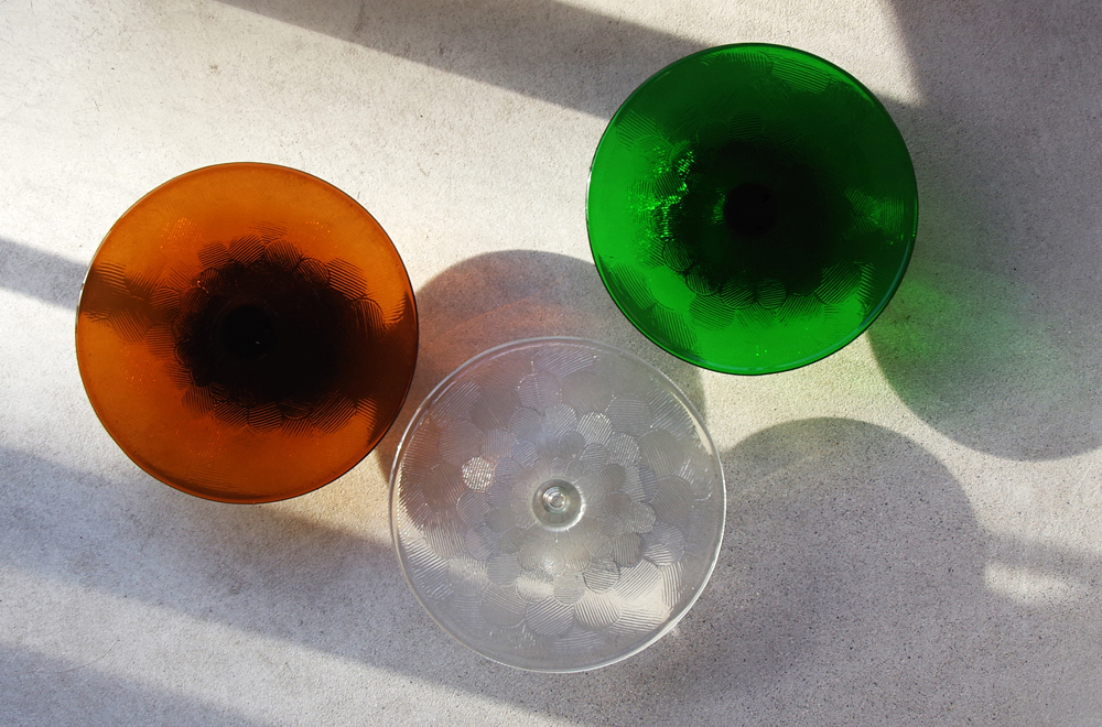ガラス全体に花びらが描かれたミランダシリーズは、厚みのあるフォルムも相まって、レトロな雰囲気が漂います。