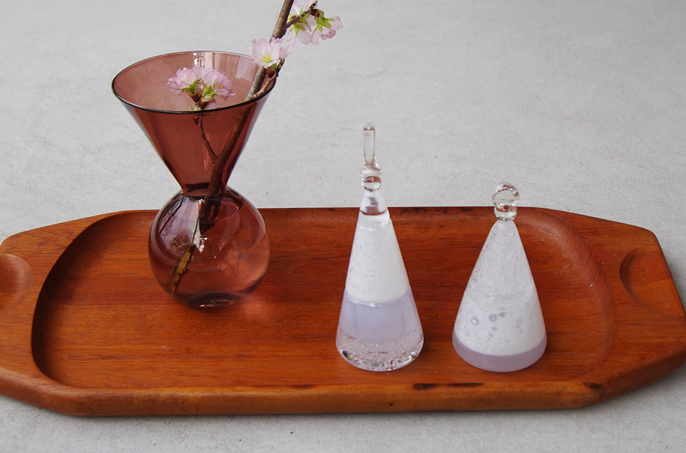 気泡、乳白色、透明と、よりシンプルさが増し、凛とした表情が引き立ちます。