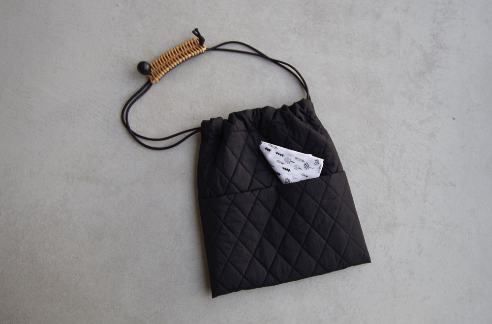 柔らかく上質なキルティング素材のバッグ。Lサイズのみ、外側にポケットがついています。