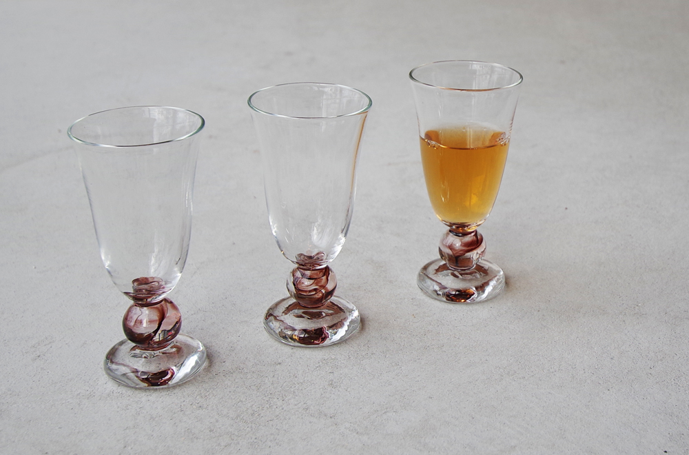 薄紫色のガラス玉がポイントの、「玉脚グラス」。