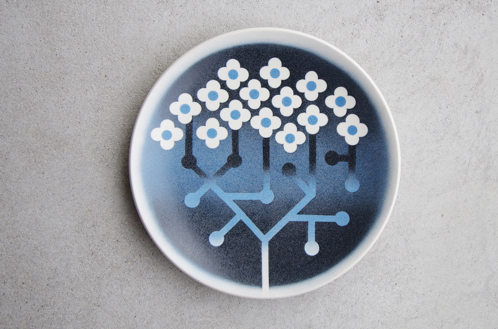 白のお花に、茎の部分はグラデーションが美しい壁掛けのデザインは、LasseHietala(ラッセ・ヒエタラ)が手がけました。