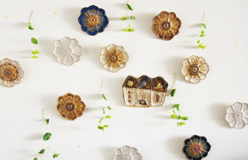 1点ずつ絵付をした個展限定品の陶板も登場しています。
