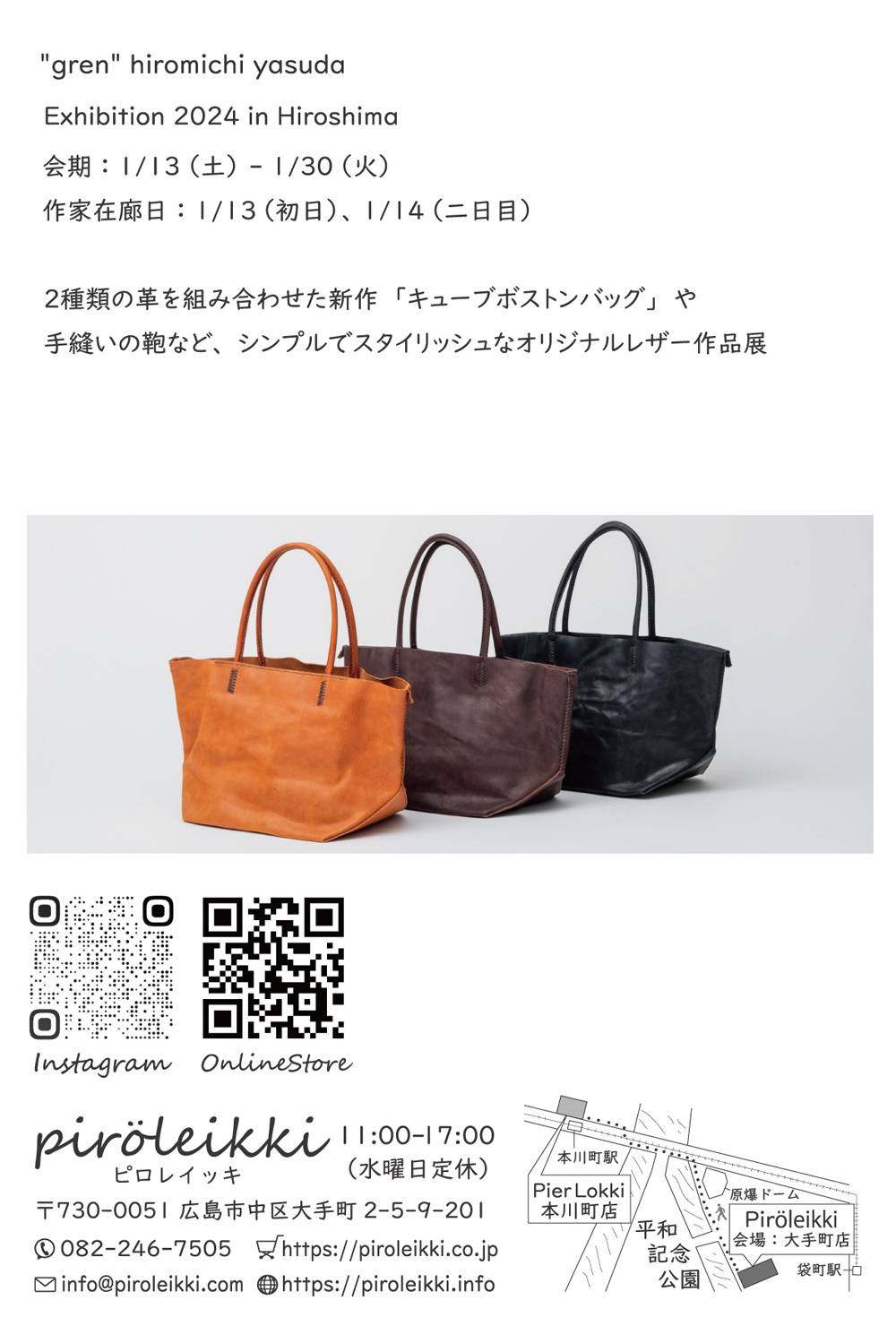 岐阜にアトリエ・ショップを構える「”gren” hiromichi yasuda」さんの天然皮革を用いて丁寧に仕立てられた各作品をお楽しみくださいませ。