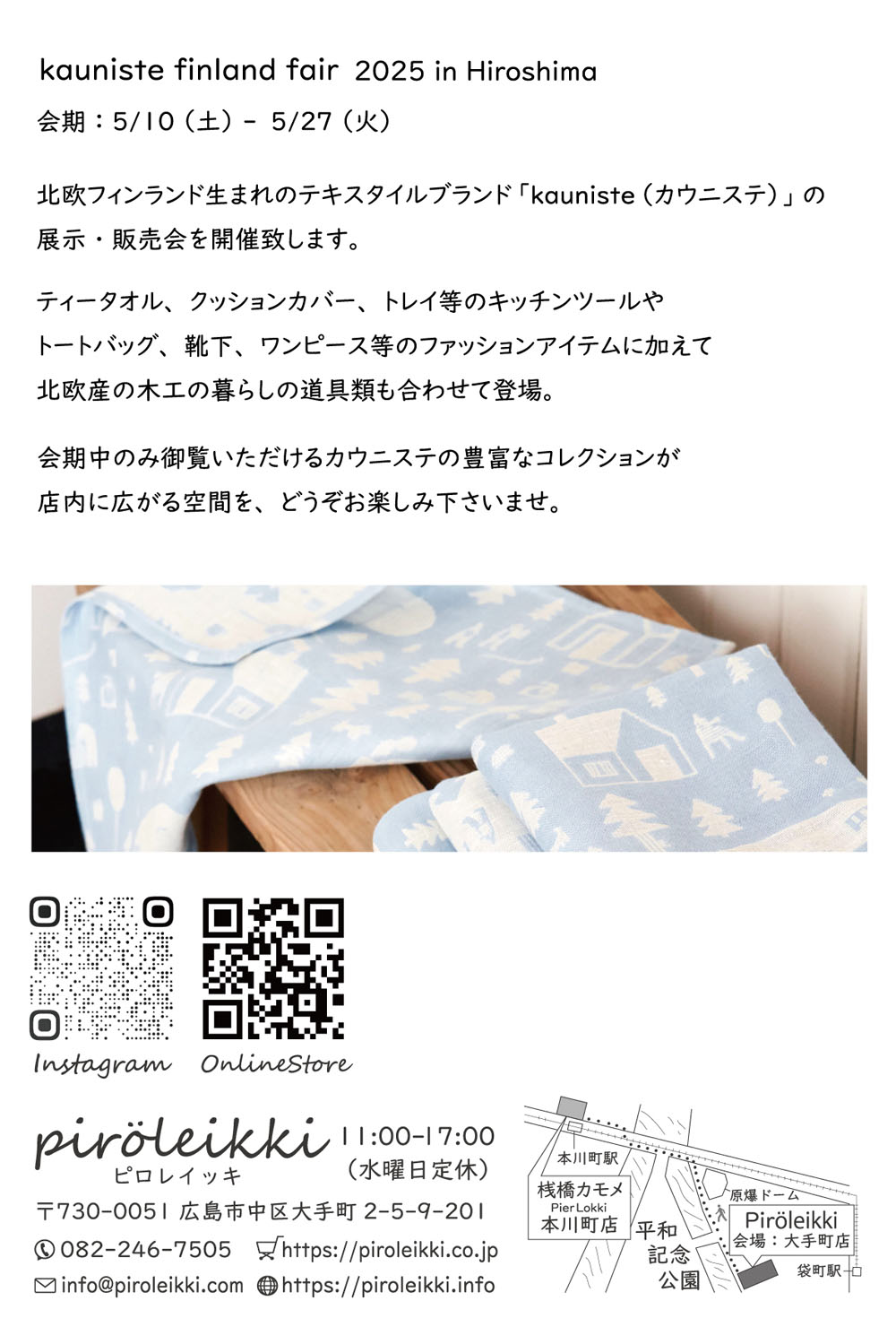 ピロレイッキ(大手町店)では「5/10(土)」から、北欧フィンランド生まれのテキスタイルブランド @kauniste_finland カウニステの展示・販売会を開催致します。
