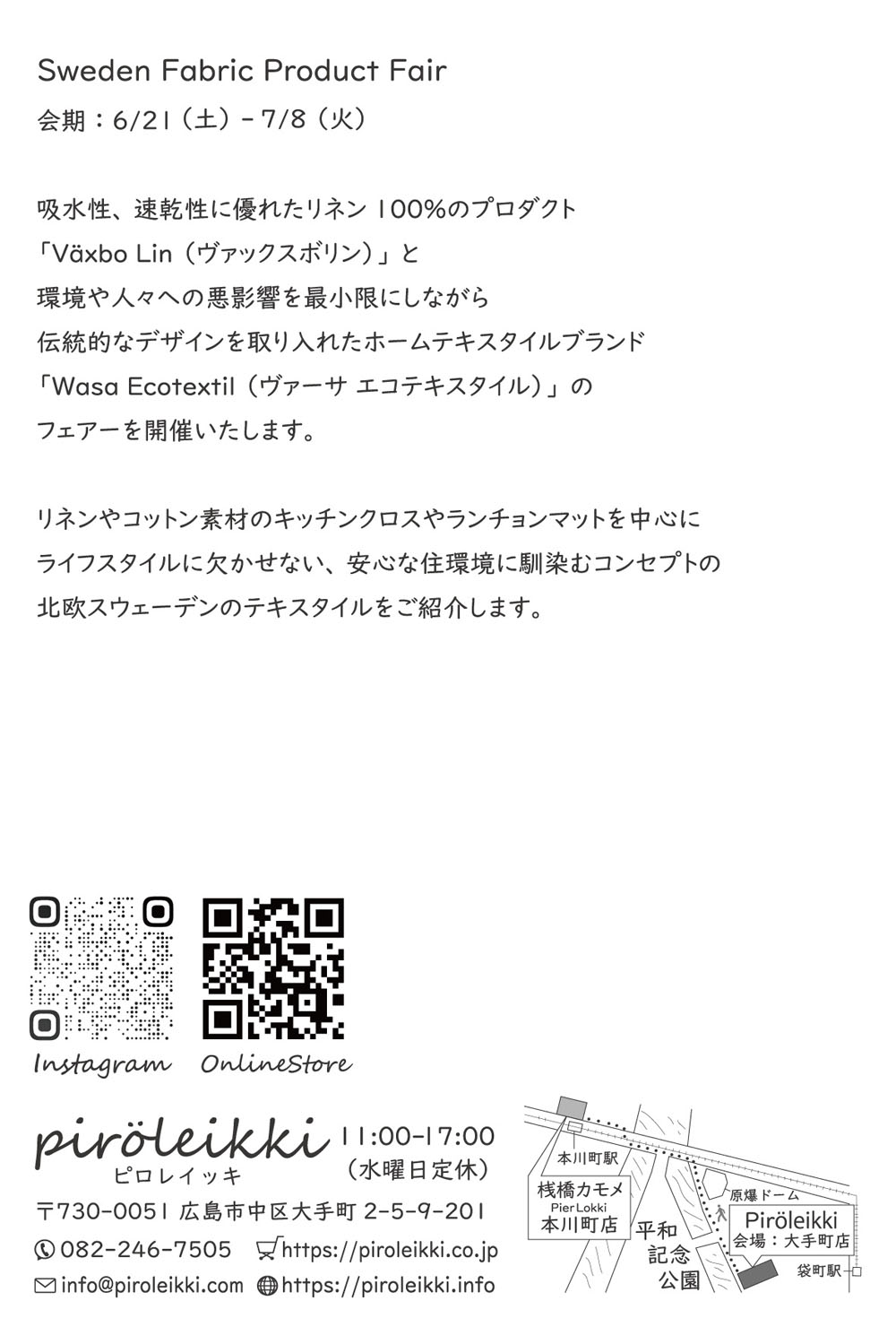 ピロレイッキ(大手町店)では6/21(土)より「Sweden Fabric Product Fair」を開催します。
