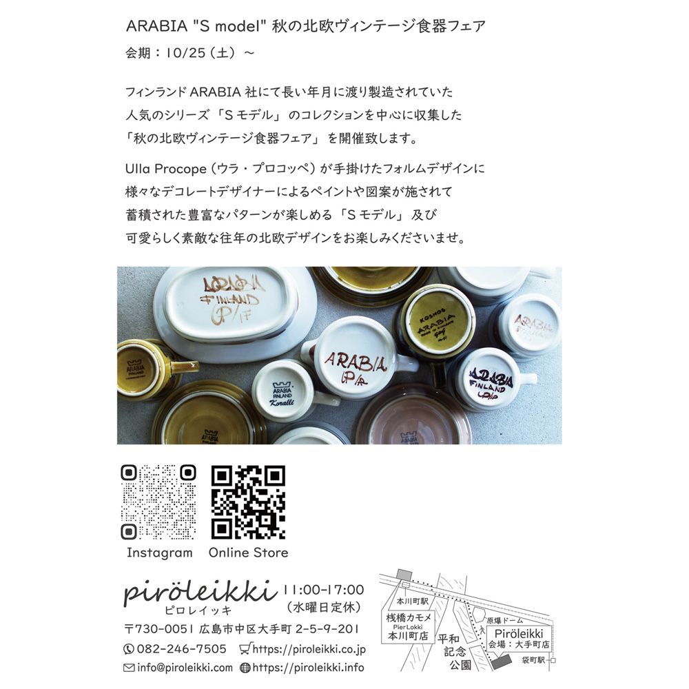 ARABIA “S model” 秋の北欧ヴィンテージ食器フェア