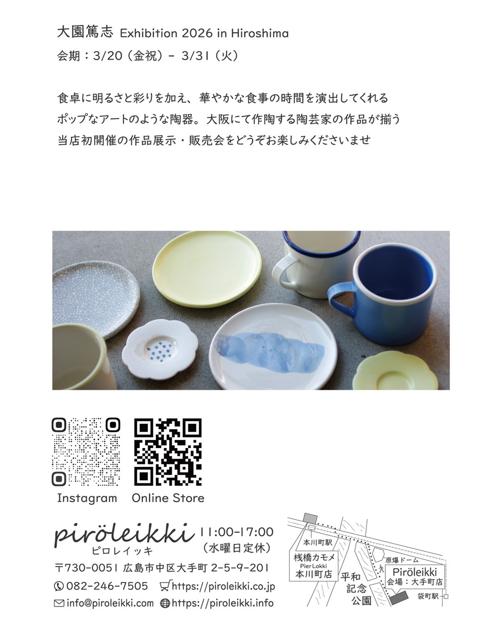 大阪に築窯し作陶する陶芸家「大園篤志」さんの作品展示作品展示・販売会を開催致します。