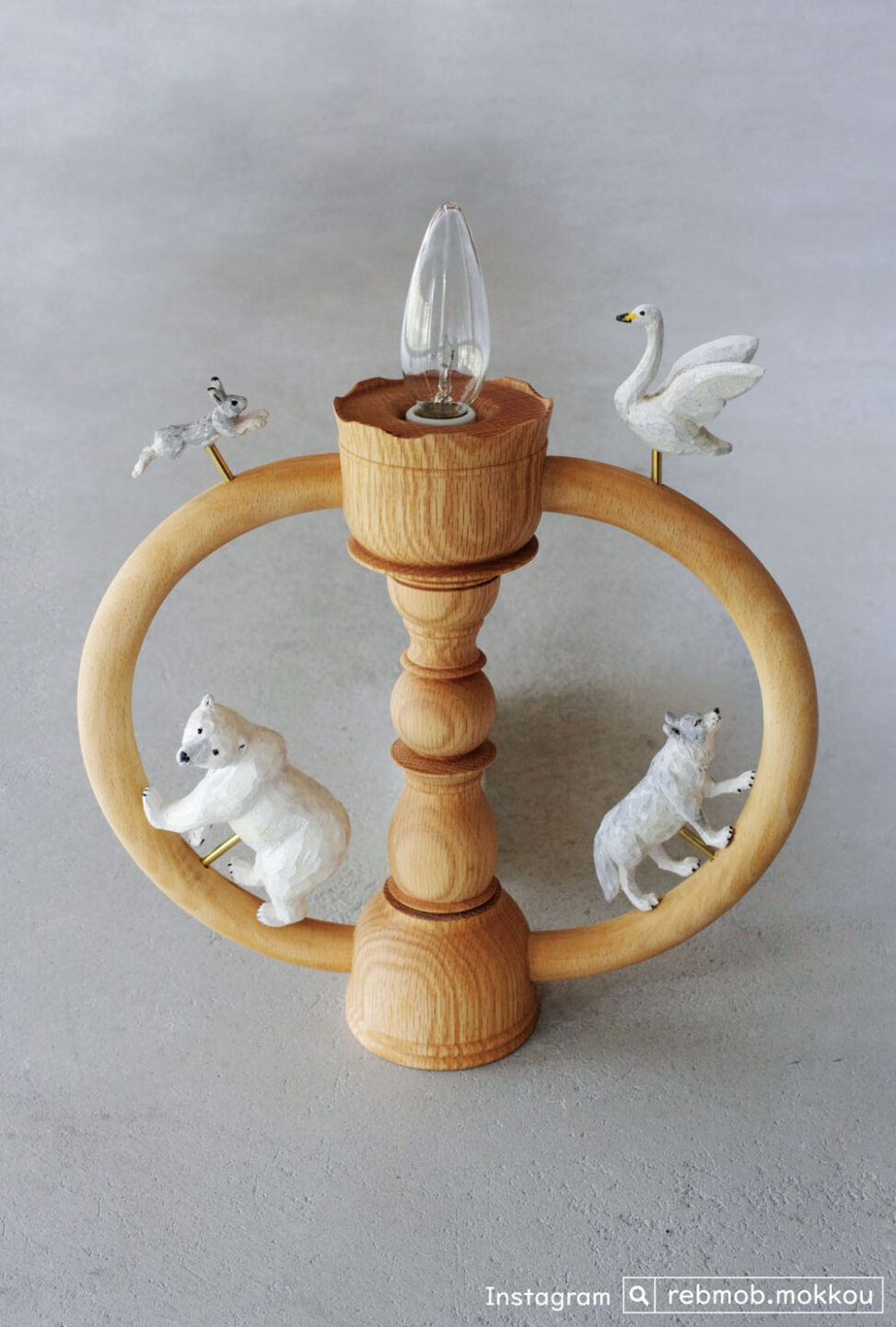 動物の木彫オブジェと、実用性のある暮らしの道具が融合した、独創性溢れる作風がユニークな各種木工作品が揃います。