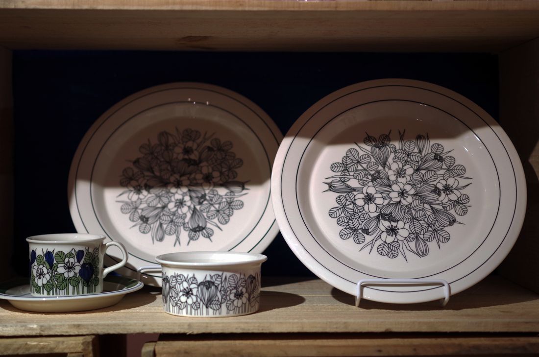 ARABIAの人気ヴィンテージ、KROKUS(クロッカス)シリーズのプレート、シュガーボウル、カップ&ソーサを入荷。