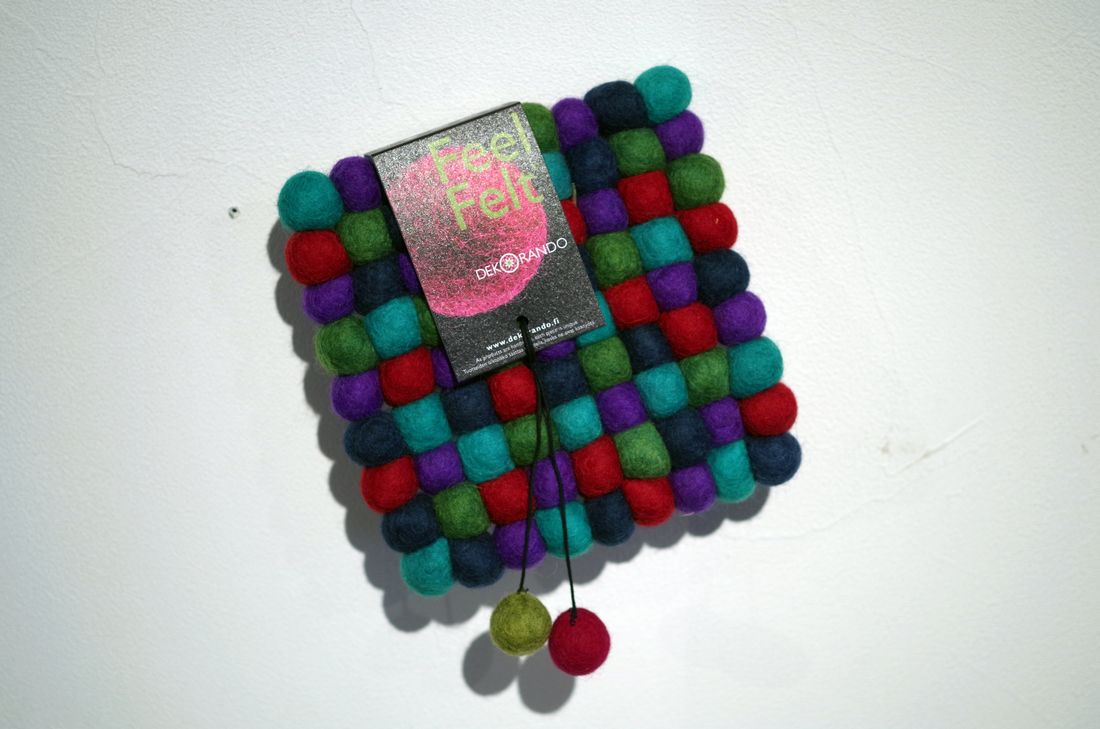 フェルトのボールの集合で出来た、鍋敷き(大サイズ)及びコースター(小サイズ)を入荷しました。