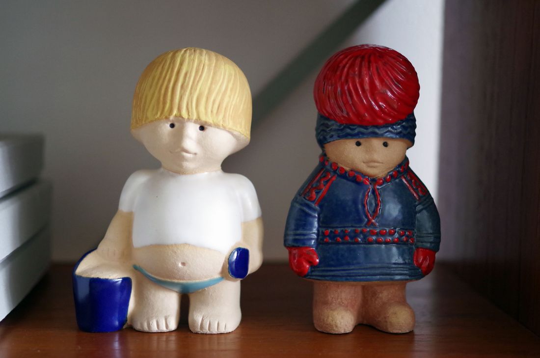 ポッコリでたお腹がキュートな夏の子供と、サーミ族の民族衣装のようなものを纏った冬の子供。