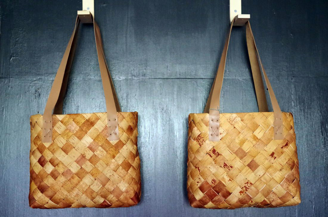 丁寧にしっかりと編み込まれた白樺のフラットな本体と、肩に優しいソフトな革ヒモで作られた、北欧フィンランドより来た白樺のバッグ。