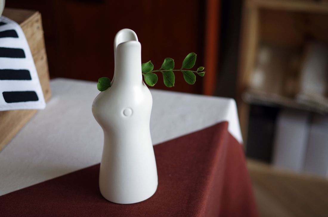 水鳥のクチバシのようにも見える、うさぎの耳を模した曲線の美しい挿し口は、個性的な一輪挿しを演出することが出来るユニークなデザイン。