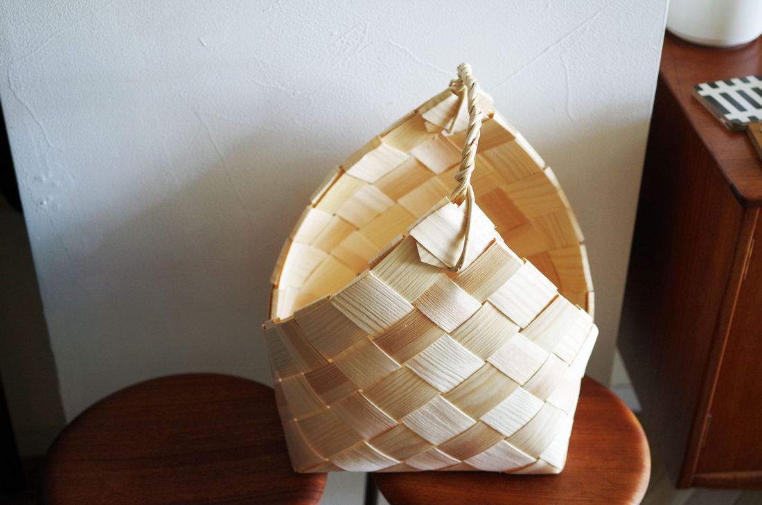 本品の生産国フィンランドでは、主に薪を入れて運ぶのに使われている、特徴的な形のバスケット。