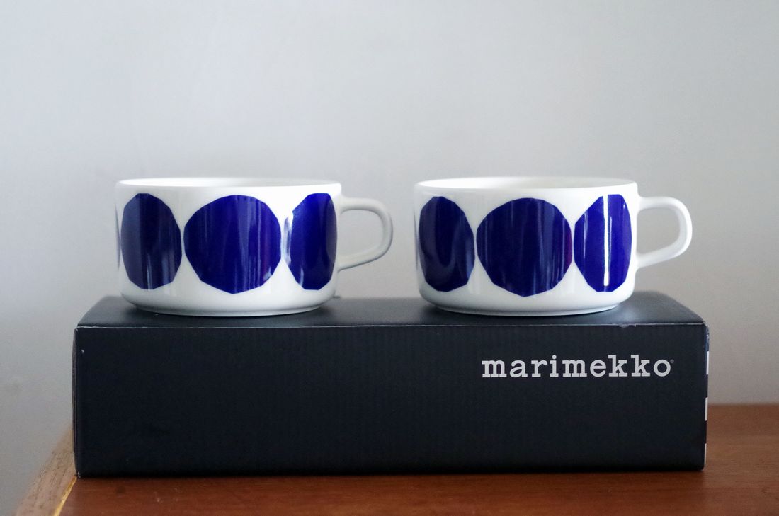 真っ白な背景に浮かぶ、北欧の海やベリーを彷彿させる濃い目のブルー。