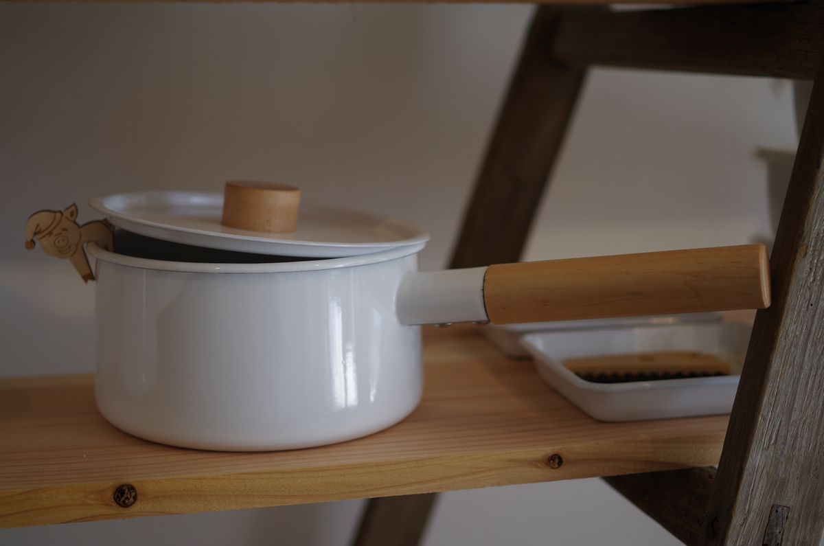 こちらは小泉誠氏デザインのホーローの片手鍋となります。