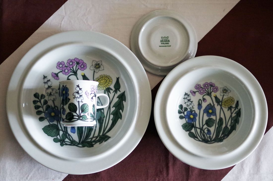 フィンランドの草花が描かれてますが、日本でも見たことある草花たちで、どこか北欧と日本との親和性を感じる事のできる食器です。