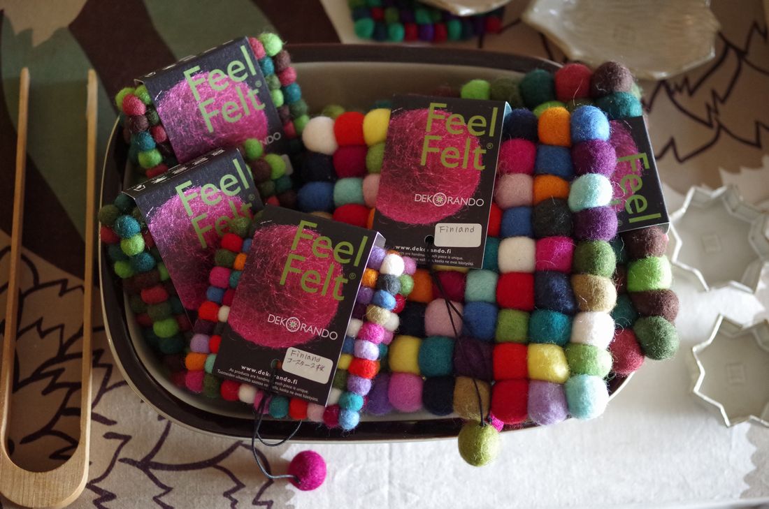 2006年フィンランドのヘルシンキに誕生した、フェルト雑貨のブランド「DEKORANDO (デコランド) 」の、フェルトボールのコースターとポットスタンド。