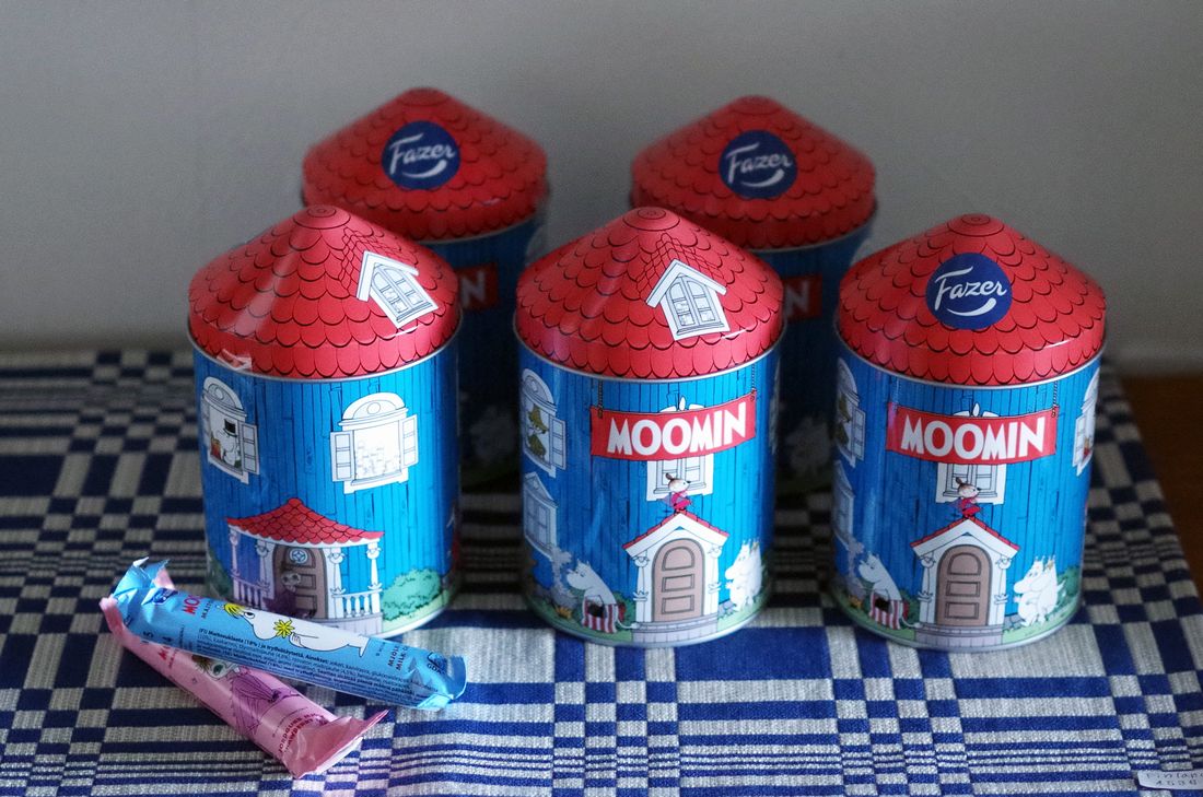 フィンランドFazer(ファッツェル)のチョコレートバー8本入りのムーミンハウス缶。