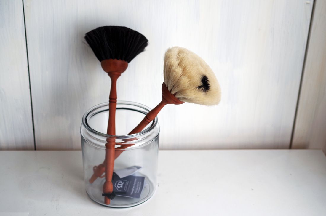 山羊の毛を使った天然毛のホコリ取りブラシ。白色毛も入荷。
