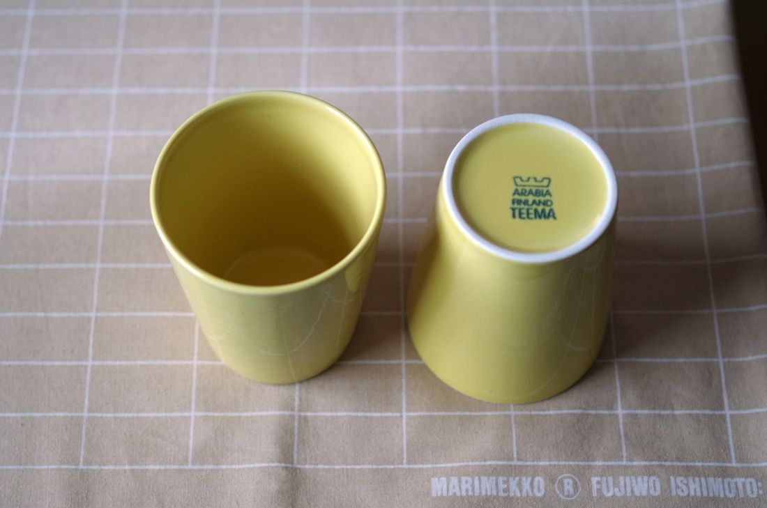TEEMAのタンブラー型のカップと合わせたのは、日本が誇るmarimekkoのテキスタイルデザイナー、石本藤雄さんの作品。