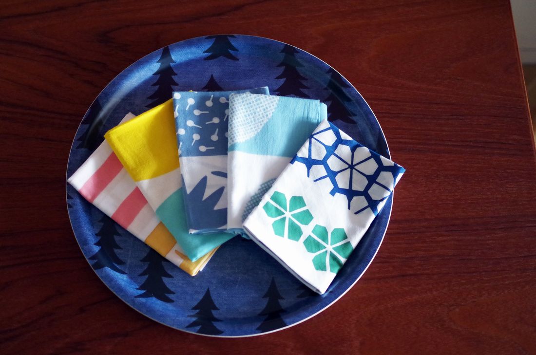 日本のてぬぐいメーカーかまわぬが、北欧の若手デザイナーたちとコラボした、北欧デザインのてぬぐい。