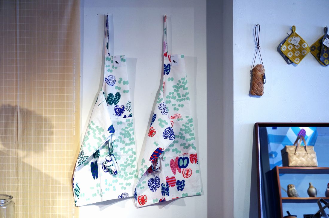 カウニステの新柄「Perhonen(ペルホネン)」のエプロンも入荷。