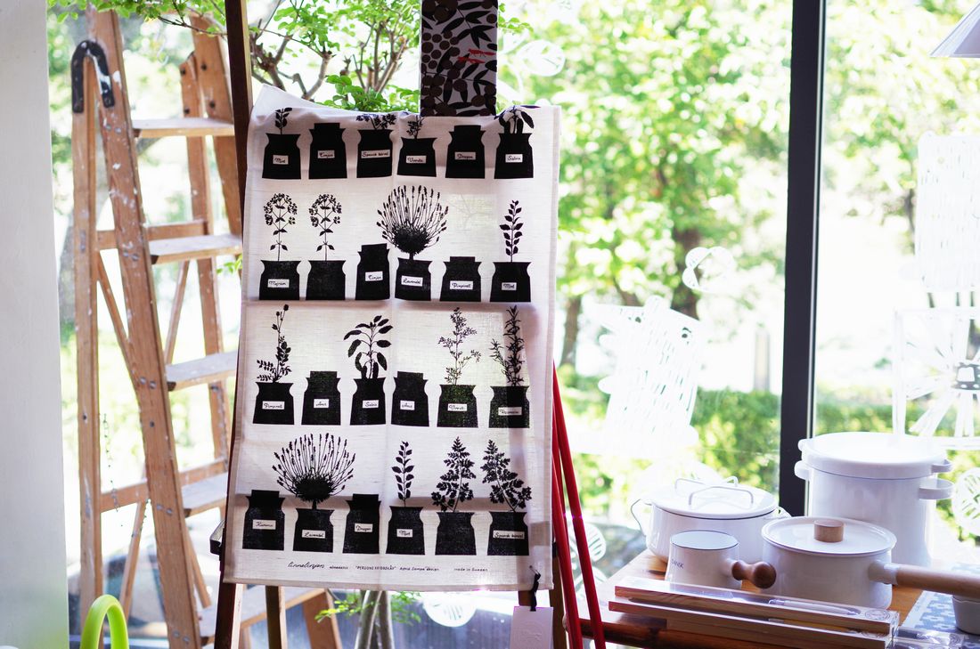 ハーブポットが文化として根付く、北欧のスパイス棚をモチーフに。60年経った今でも楽しめる素晴らしいデザインのクロス。いかがでしょうか。