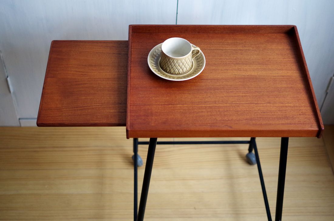 今月の店頭ポスターのスタイリングに起用した、キャスター付きテーブル。
