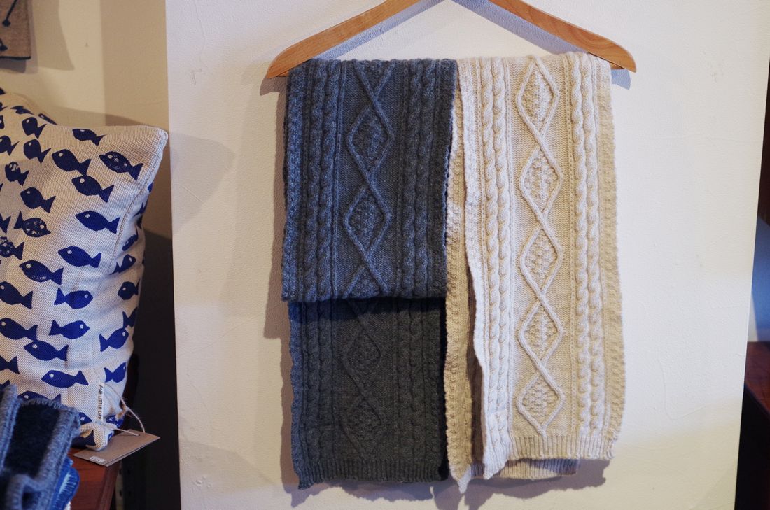 古くからの手法で丁寧に織られて いる、伝統的なケーブル編みのマフラーは、優しい肌触りと美しい模様が特徴的。