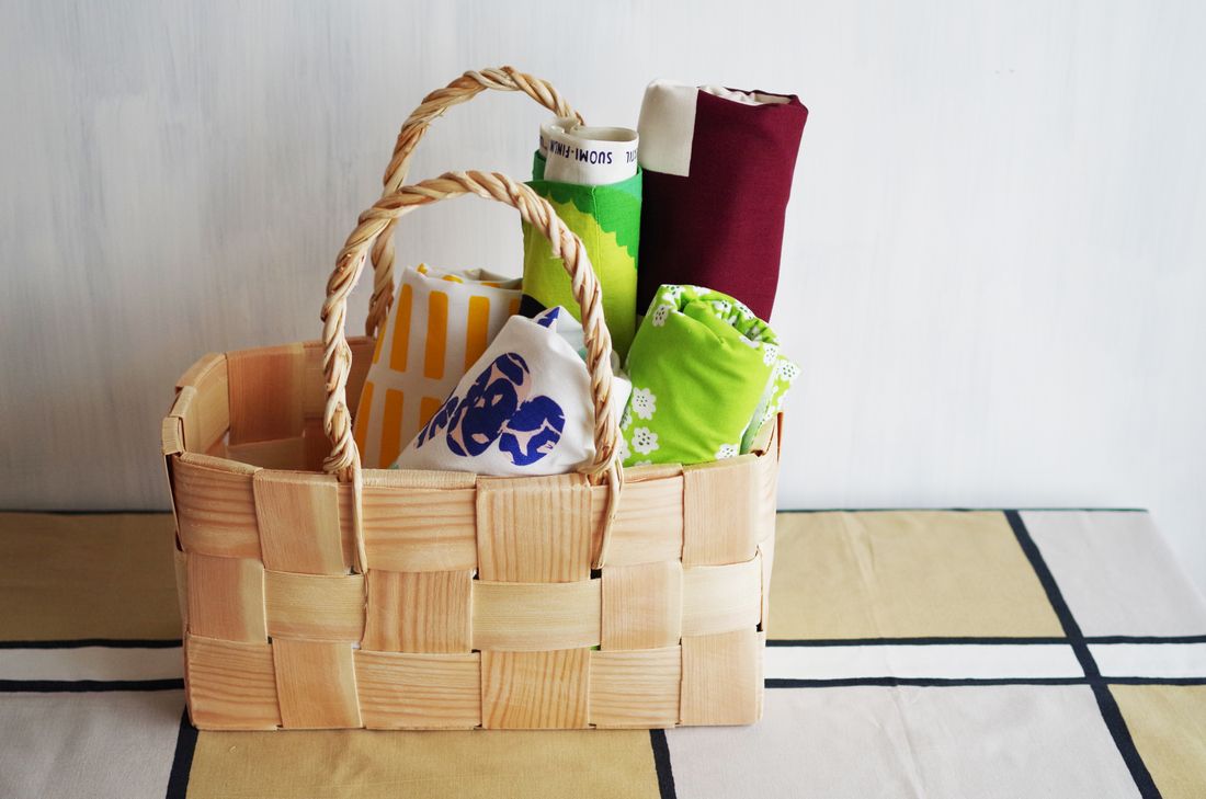 スリムでも安定する作りなので、重いファブリックのロールを挿しても問題なく、見せる収納として生きるバスケット。