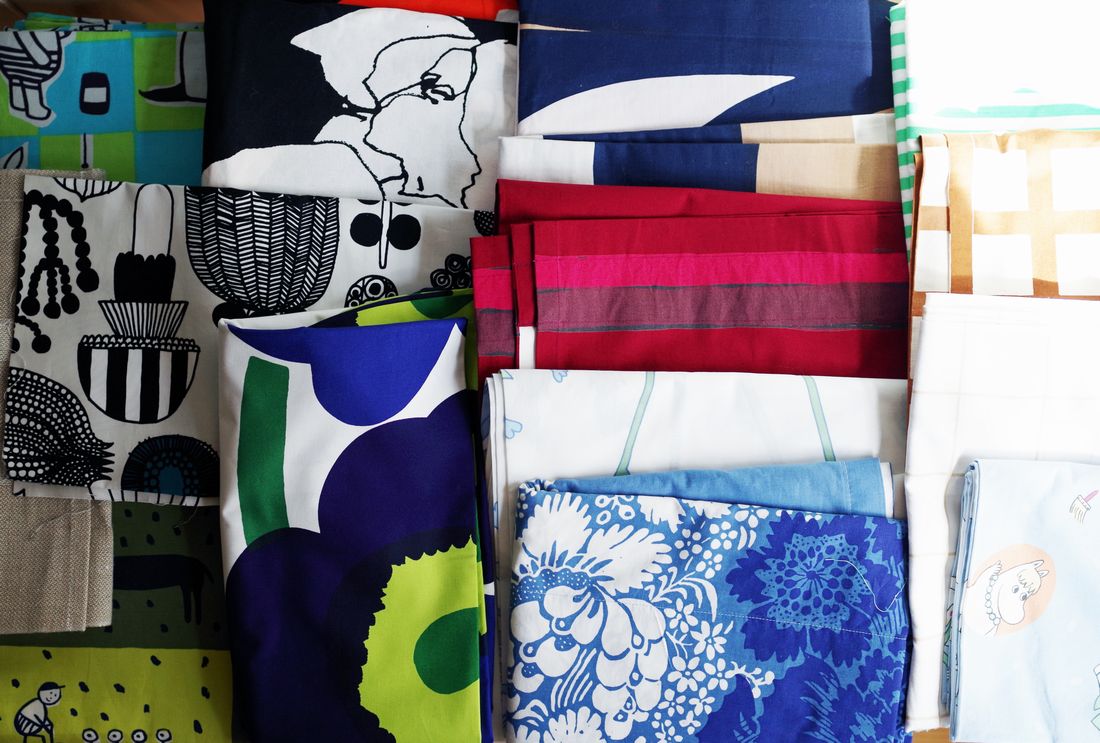 marimekko、finlayson、Vuokkoなど、現在は生産が終了しているパターンやカラーのファブリックたち。