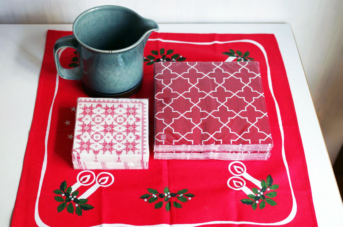 冬らしい柄や、暖かい色味のペーパーナプキンいかがでしょうか。