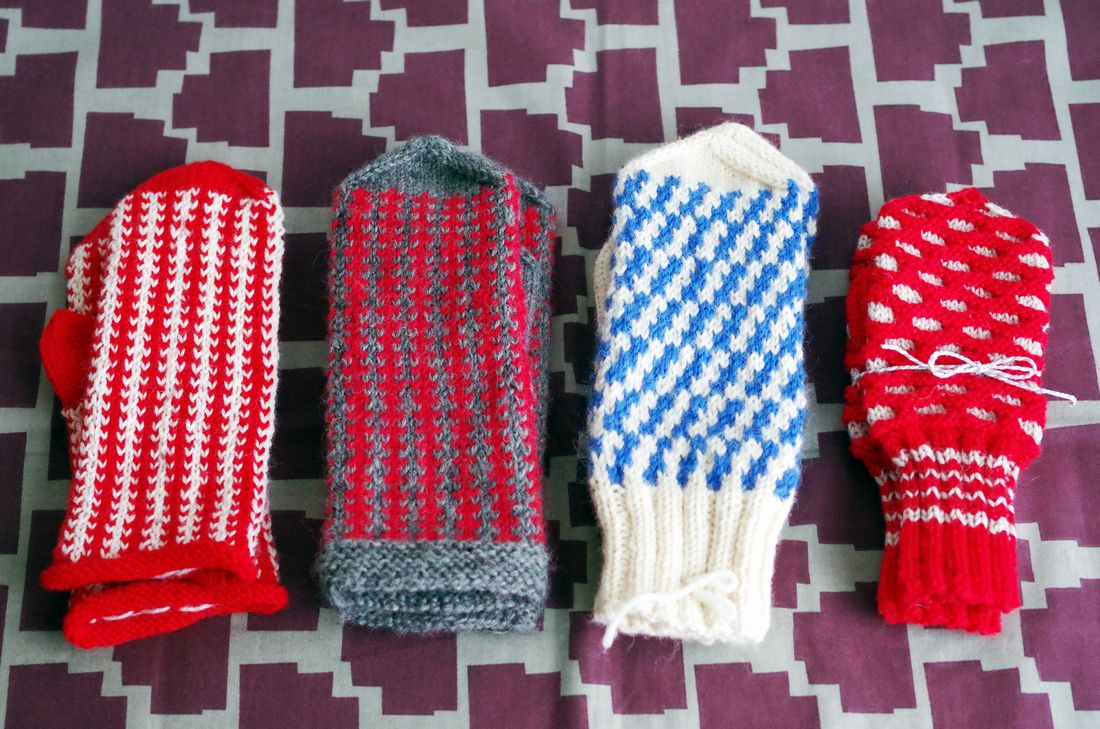 良い意味でレトロな印象を受ける手編みのミトンは、暖かく優しい色味と肌触りの、異国のニットデザインを楽しめる作品。