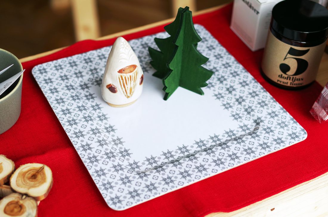 繊細な模様が特徴的なメラミン製の四角いプレートは、スウェーデン発のメーカー「Gladeholm」デザイン。