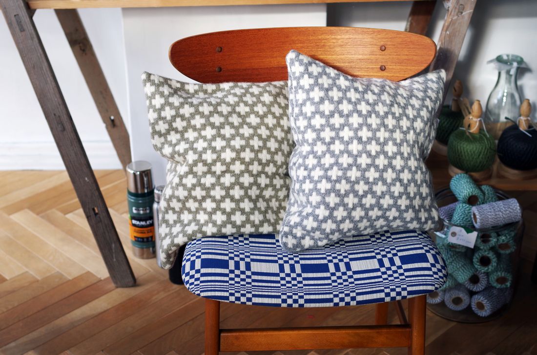 「Birgitta Lagerqvist」のクッションカバーは、ニットで編まれたフワッとした使い心地と、可愛らしいデザインパターンが特徴的。