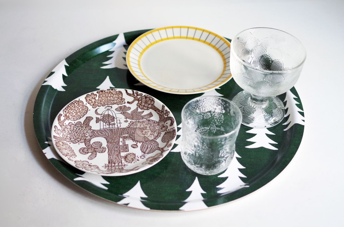 デフォルメされた木の図柄と、カラーのコントラストが、シンプルながらもしっかりと北欧感を演出してくれる、オールシーズン楽しいトレイです。