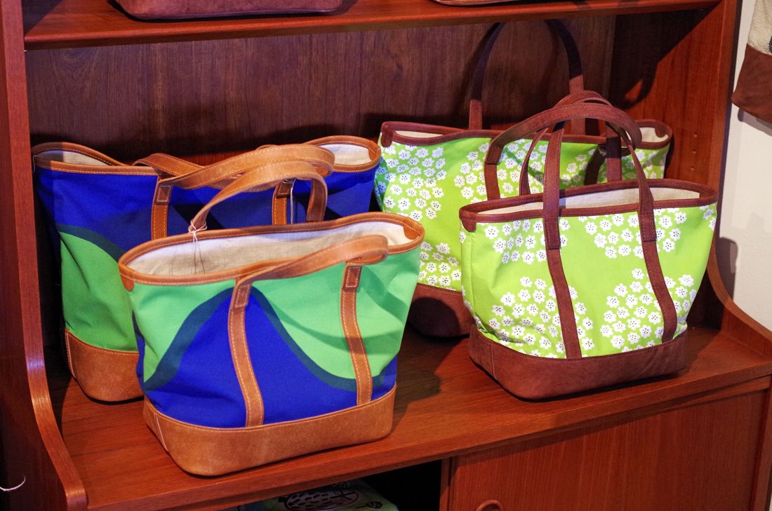 当店からmarimekkoのヴィンテージファブリックを送って、gren(グレン)に制作を依頼した、期間限定のオリジナルバッグも各サイズ入荷してます。
