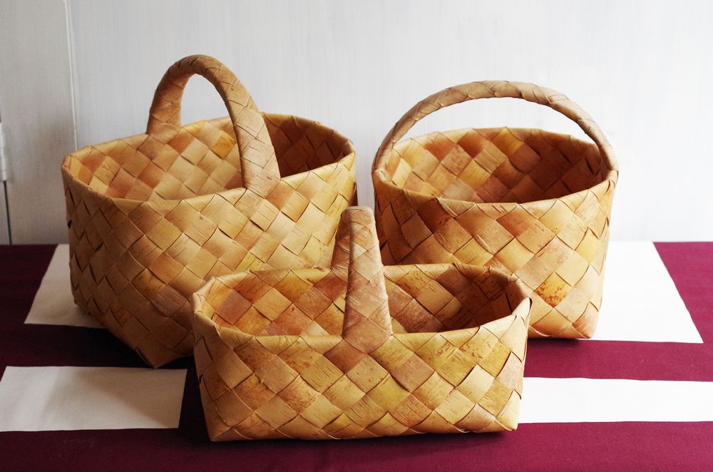 熟練の作家が手掛けるハンドメイドのバスケットは、上質の白樺の樹皮を、部位によってはワイヤー補強しながら、丁寧にしっかりと編み込まれた丈夫な出来映え。