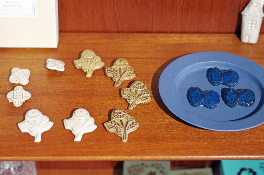 様々なモチーフの形の種類に、白や黄土色や藍色の色の種類。
