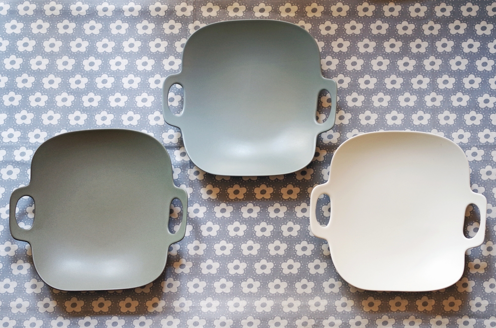 「旅に持っていく器」というコンセプトの、ハンドル付きの個性的なプレート。