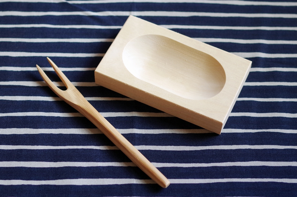 ケーキフォークは、手になじむ温もりのある素材感と、木工品ならではの柔らかい曲線が優しい印象を与えてくれる作品。