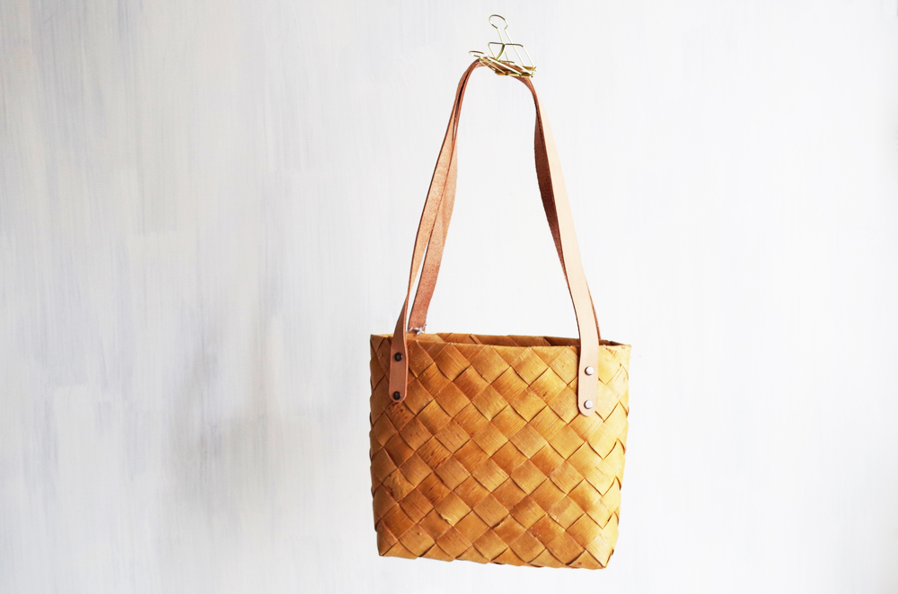 白樺の樹皮で編まれた本体と、本革の組み合わせが、素敵にマッチングしたトートバッグ。