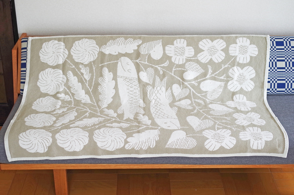 フィンランド発のブランド「LAPUAN KANKURIT(ラプアンカンクリ)」の、「KALA(魚)」がモチーフの鹿児島睦さんデザインのコットンブランケット。