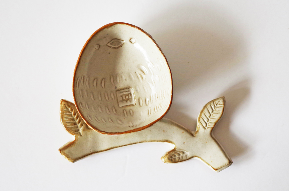 枝に停まって休む、まるまるとした小鳥が可愛らしい小皿です…